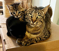 1.5 YEAR OLD This pretty sweet girl came together with other 45 siblings and cousins. She was part of a large rescue where they were all abandoned inside a house. We first thought she was the mother of four newborns and put her with the kittens. Soon after that we realized she was not their mother, but because she was happy as a surrogate mom we left her enjoy her time with the babies. ONE YEAR AND A HALF He is a very playful, fun and sweet boy.