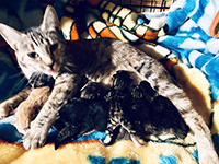 2 YEARS OLD This adorable Russian Blue young mother was giving birth in somebody's front yard when the were called to rescue her. She is one of the most beautiful cats you can imagine. She checks all the boxes: sweet, chatting, cuddling, purring, intelligent, and clean. The perfect kitty to share your life with.