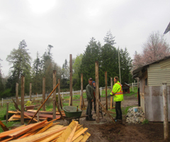 Jasmine's employees placing the poles for the cats' pen. |